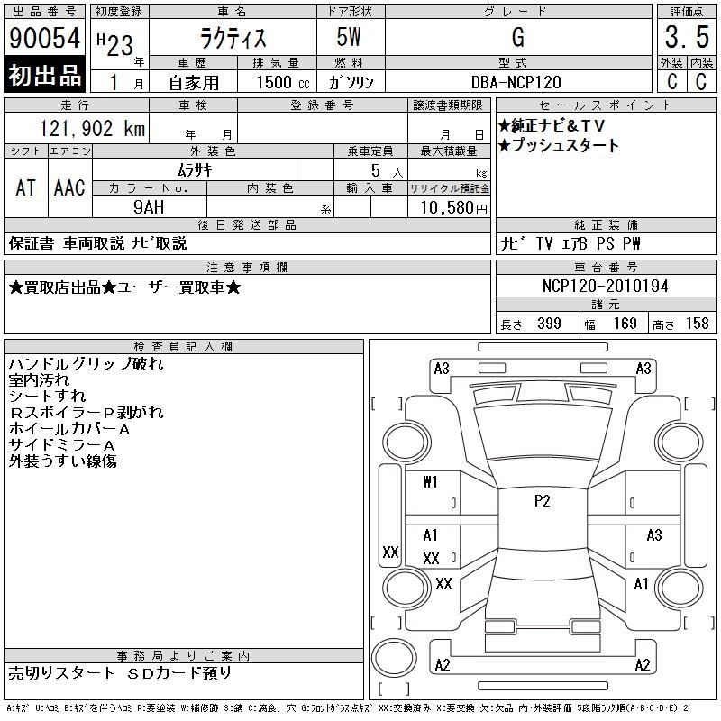 TOYOTA RACTIS G - лот 90054
