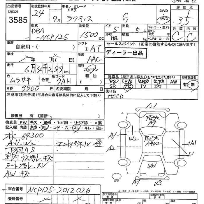 TOYOTA RACTIS 4WD G - лот 3585