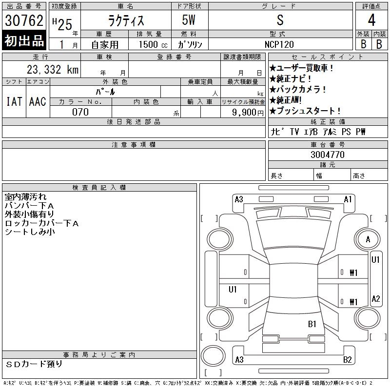 TOYOTA RACTIS S - лот 30762