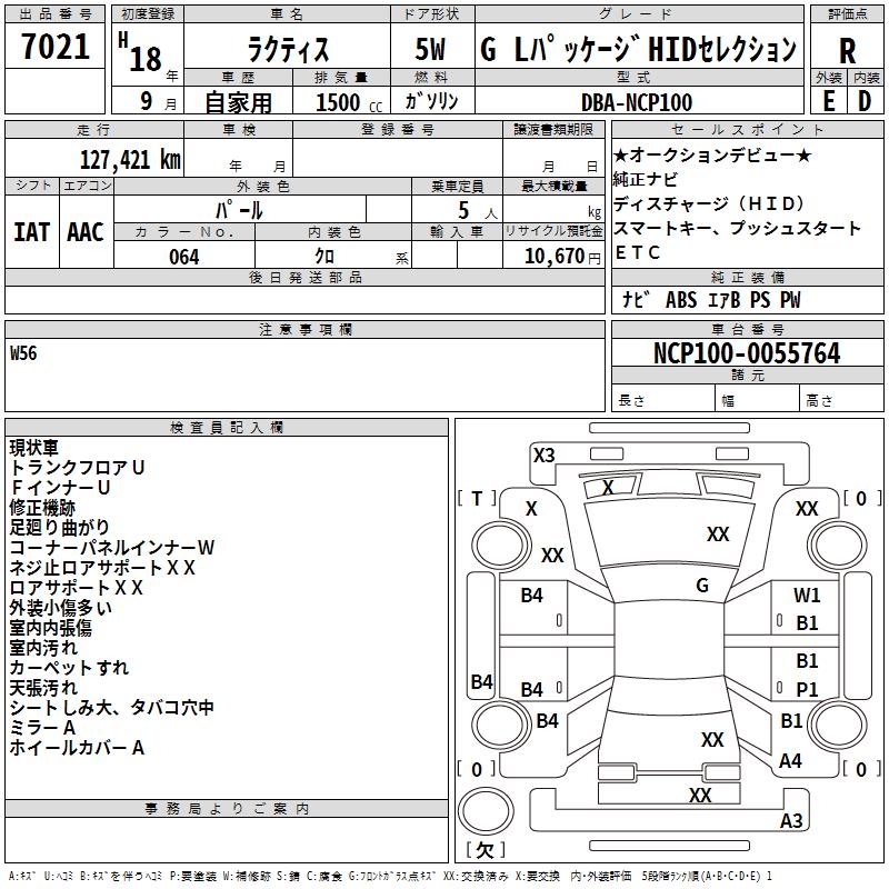 TOYOTA RACTIS G L PACKAGE HID SELECTION - лот 7021