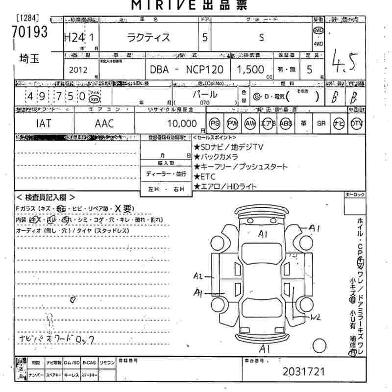 TOYOTA RACTIS S - лот 70193