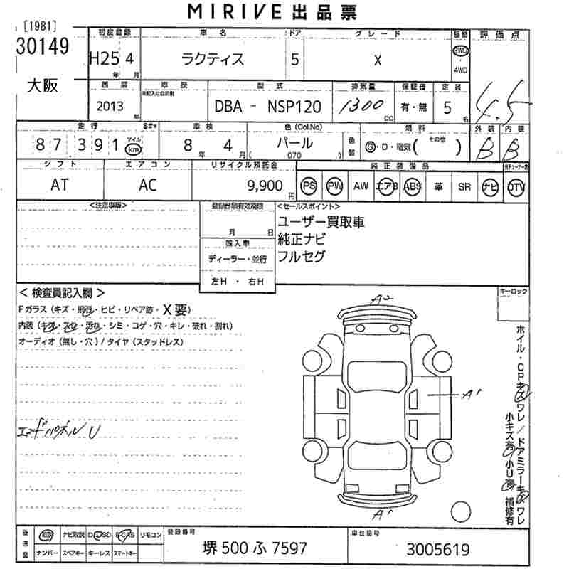 TOYOTA RACTIS X - лот 30149