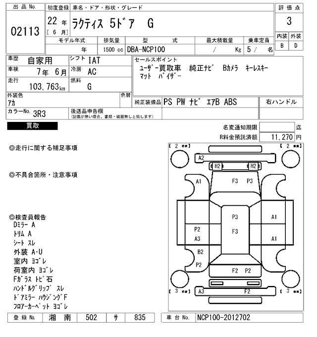 TOYOTA RACTIS G - лот 2113