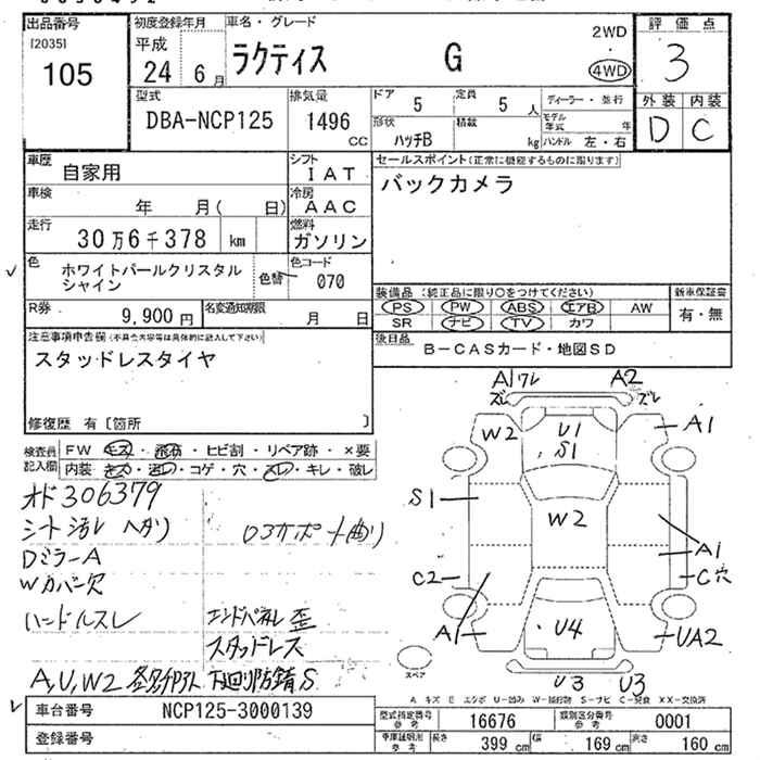 TOYOTA RACTIS 4WD G - лот 105