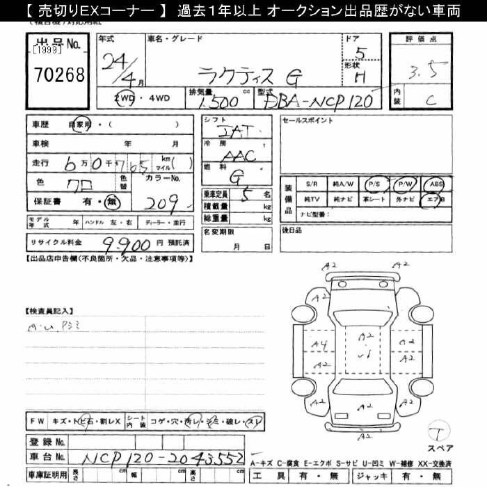 TOYOTA RACTIS G - лот 70268