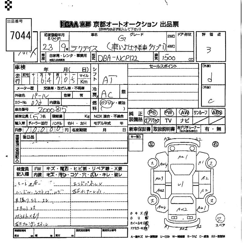 TOYOTA RACTIS G WHEELCHAIR SPECIFICATION CAR TYPE 1 - лот 7044