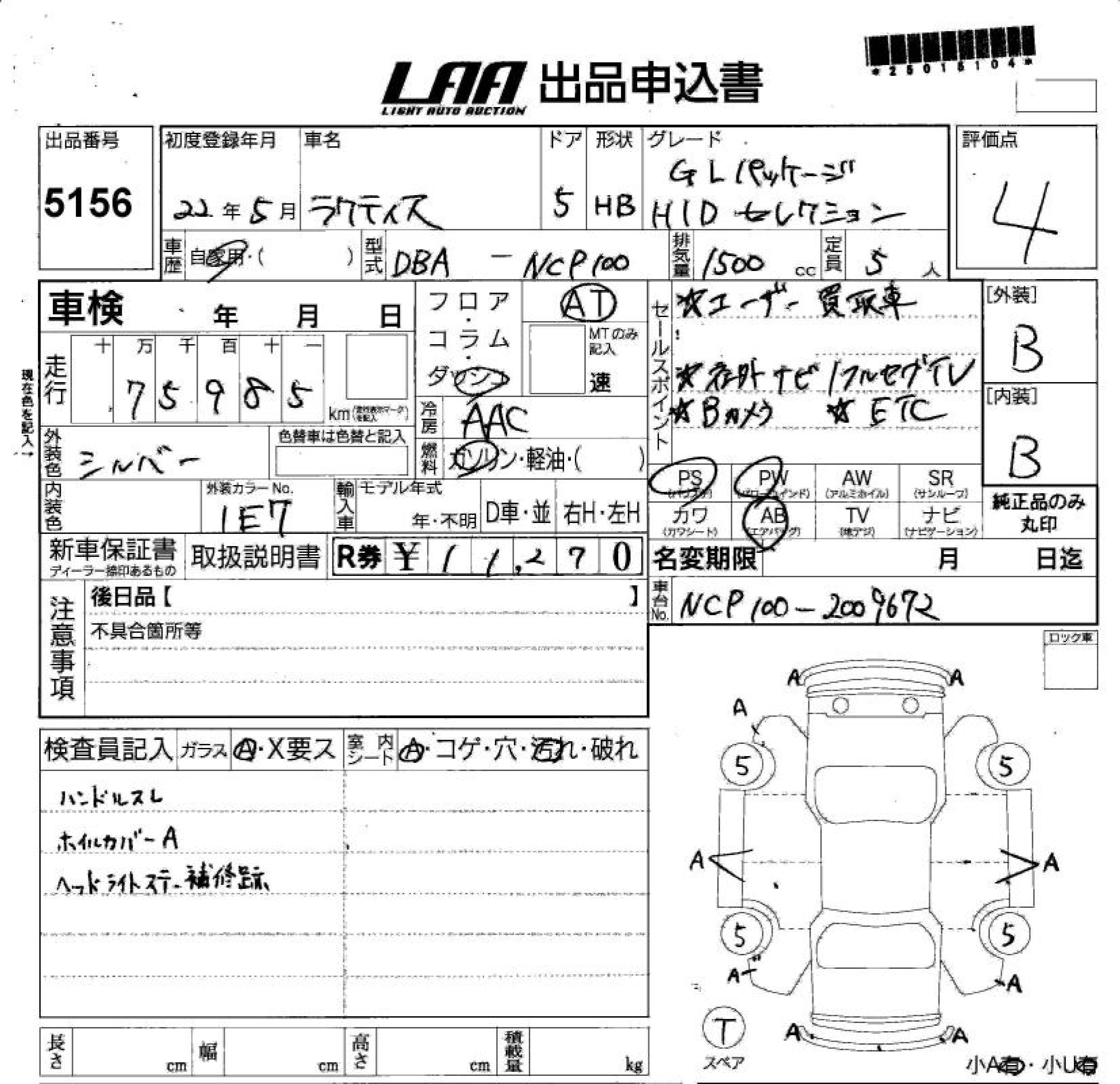 TOYOTA RACTIS G L PACKAGE *HID SELECT - лот 5156