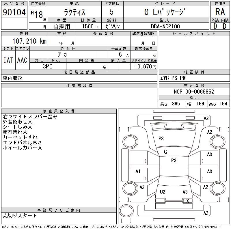 TOYOTA RACTIS G L PACKAGE - лот 90104