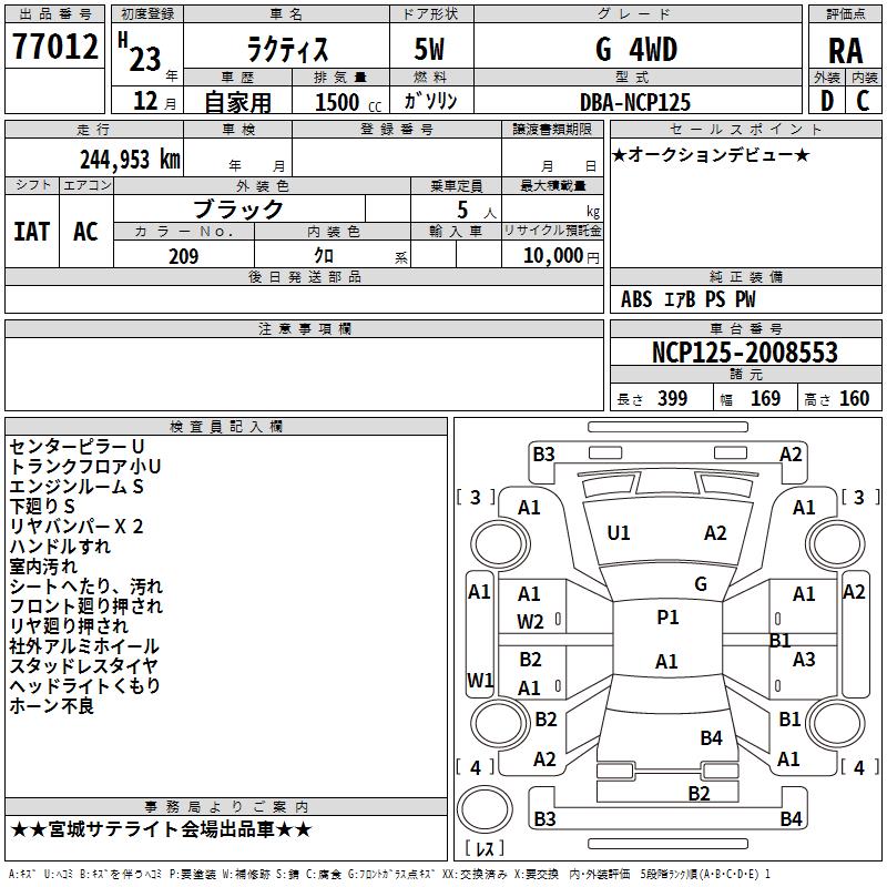 TOYOTA RACTIS G 4WD - лот 77012