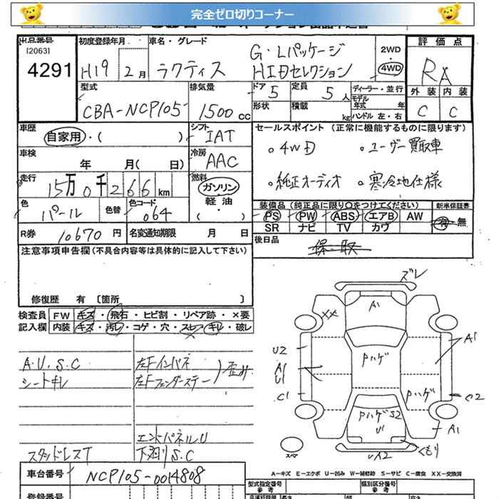 TOYOTA RACTIS 4WD G L PACKAGE HID SELECTION - лот 4291