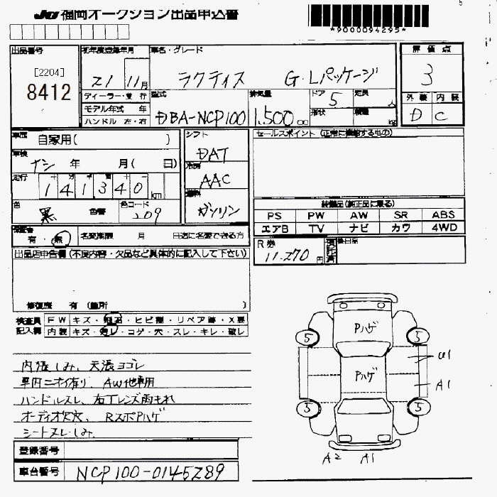 TOYOTA RACTIS G L PACKAGE - лот 8412