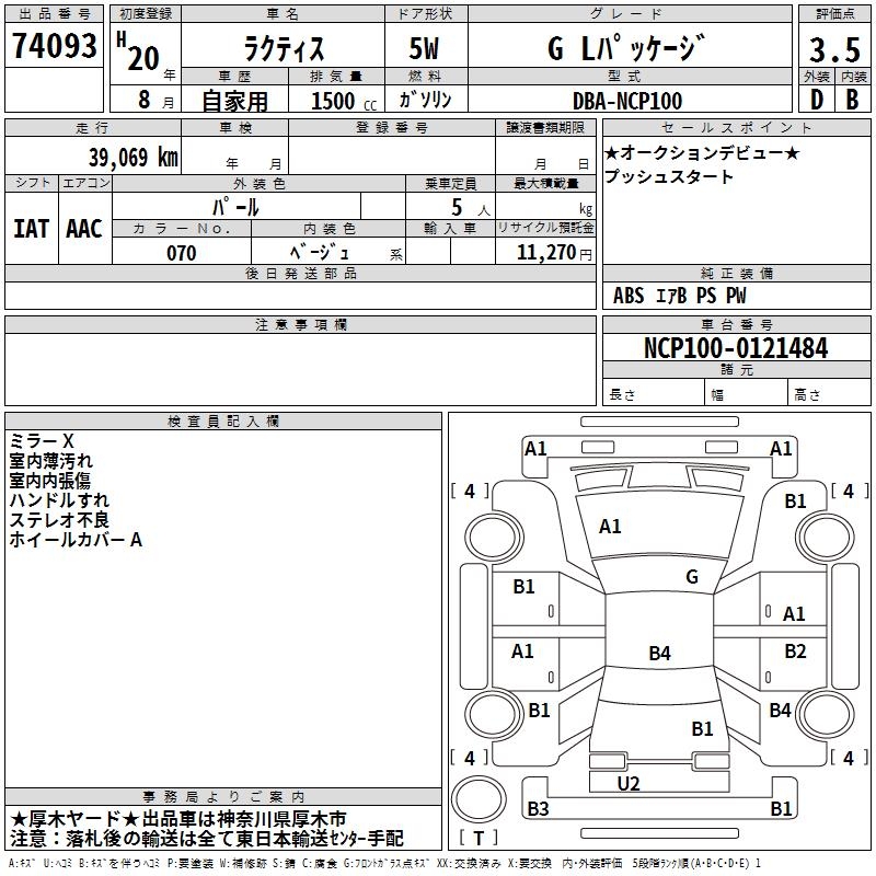 TOYOTA RACTIS G L PACKAGE - лот 74093