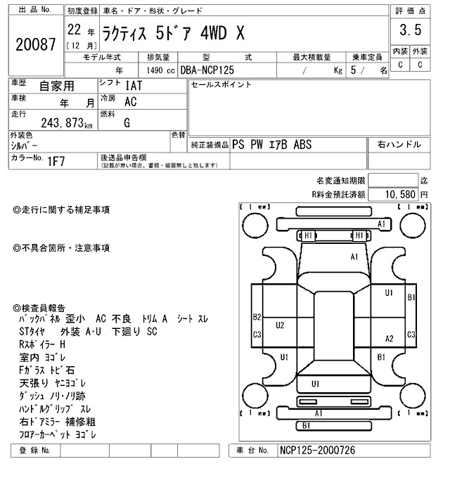 TOYOTA RACTIS 4WD - лот 20087