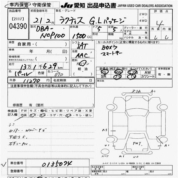TOYOTA RACTIS G L PACKAGE - лот 4390