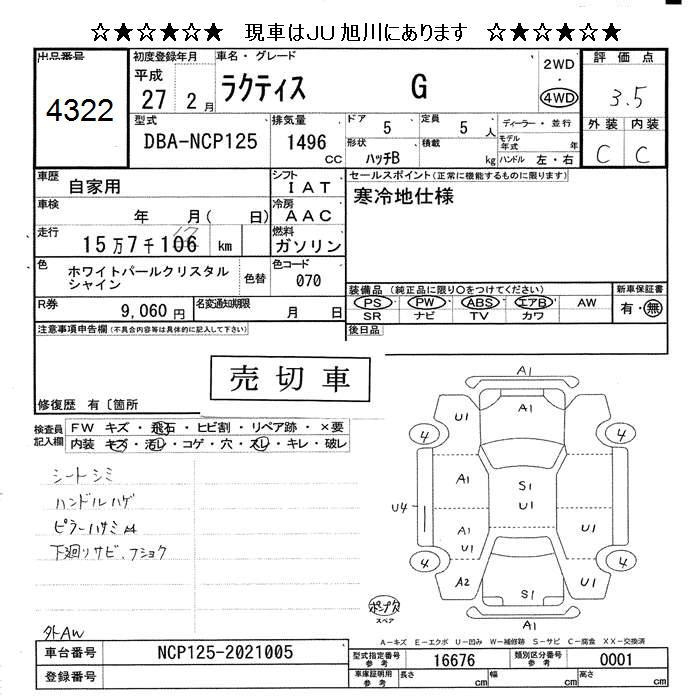 TOYOTA RACTIS 4WD G - лот 4322