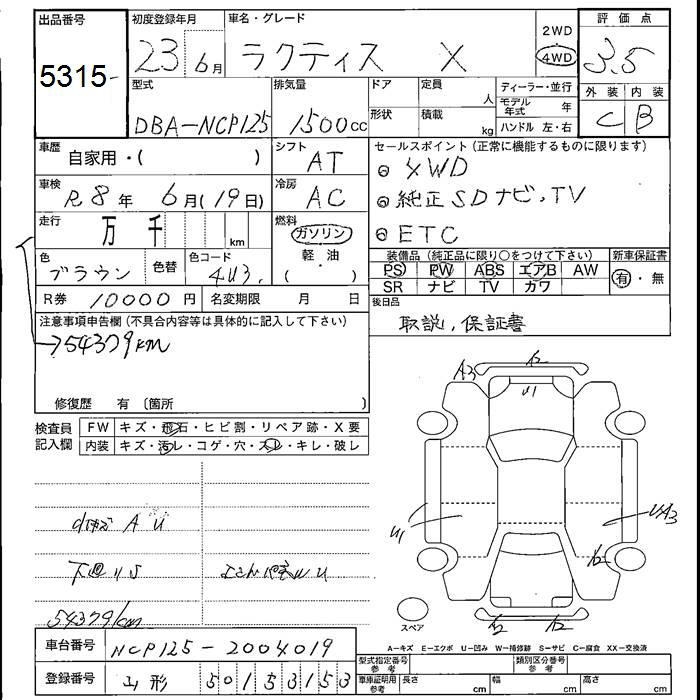 TOYOTA RACTIS 4WD X - лот 5315