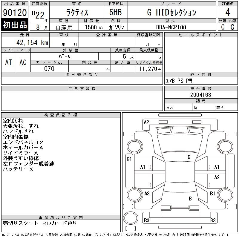 TOYOTA RACTIS G HID SELECTION - лот 90120