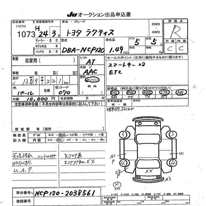 TOYOTA RACTIS - лот 1073