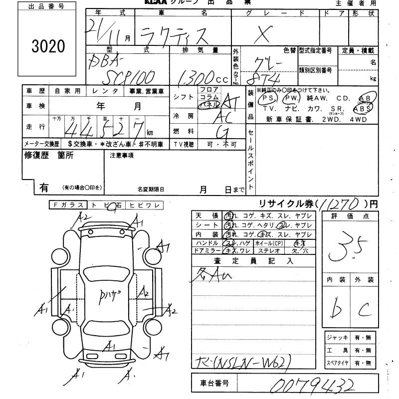 TOYOTA RACTIS X - лот 3020