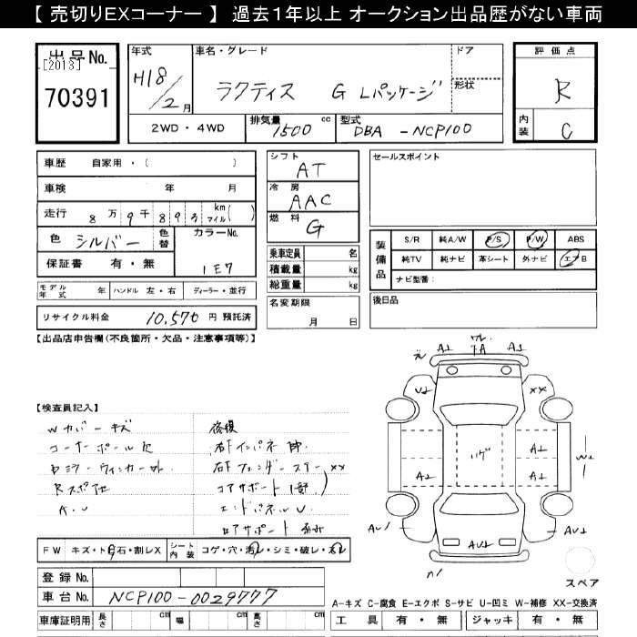 TOYOTA RACTIS G L-PKG - лот 70391