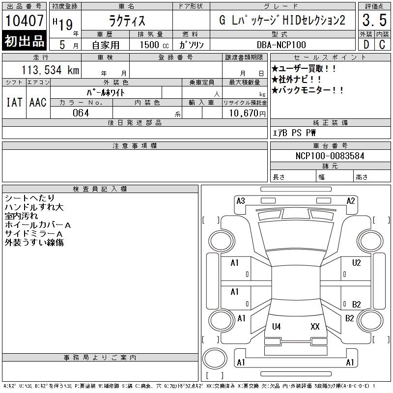 TOYOTA RACTIS G L PACKAGE HID SELECTION 2 - лот 10407