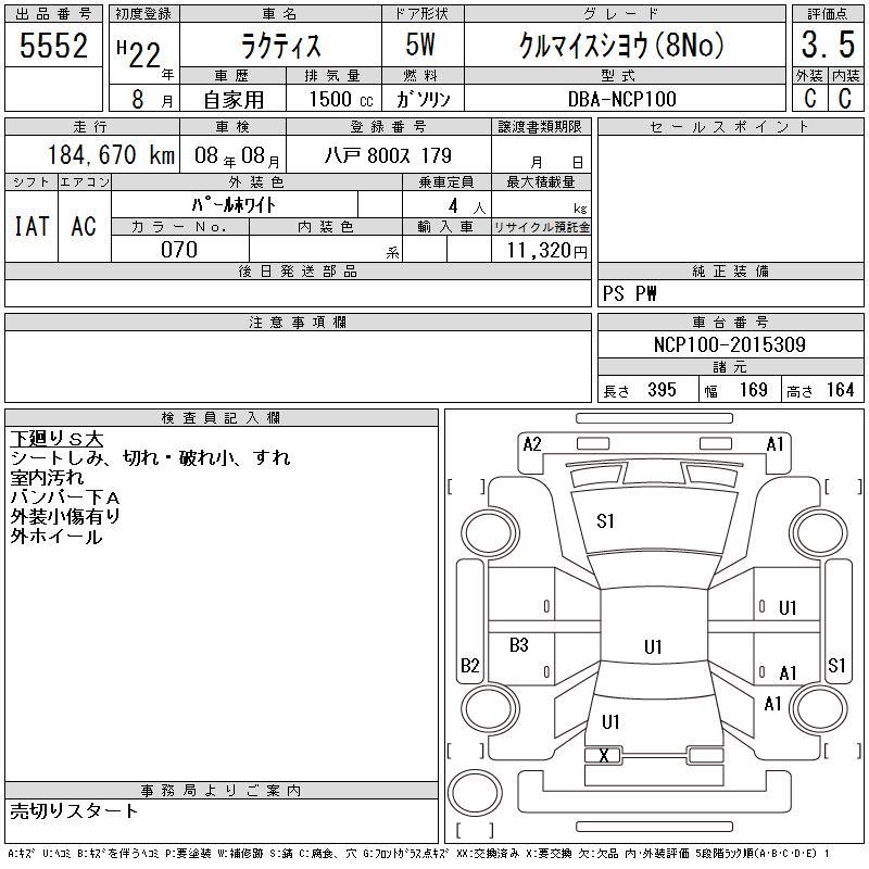 TOYOTA RACTIS KRU MY S USE (8NO) - лот 5552