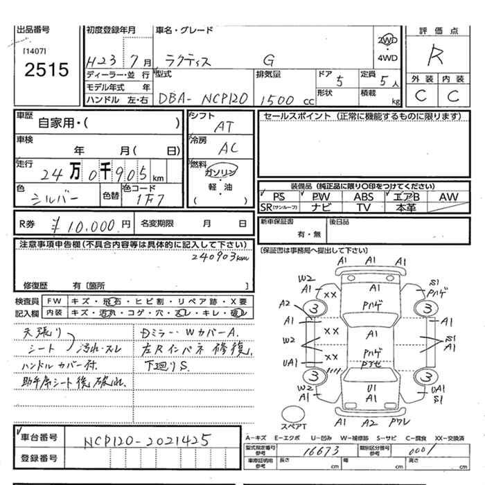 TOYOTA RACTIS G 2WD - лот 2515