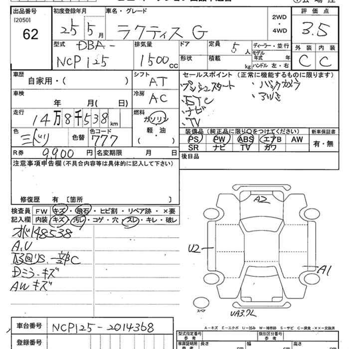 TOYOTA RACTIS G - лот 62