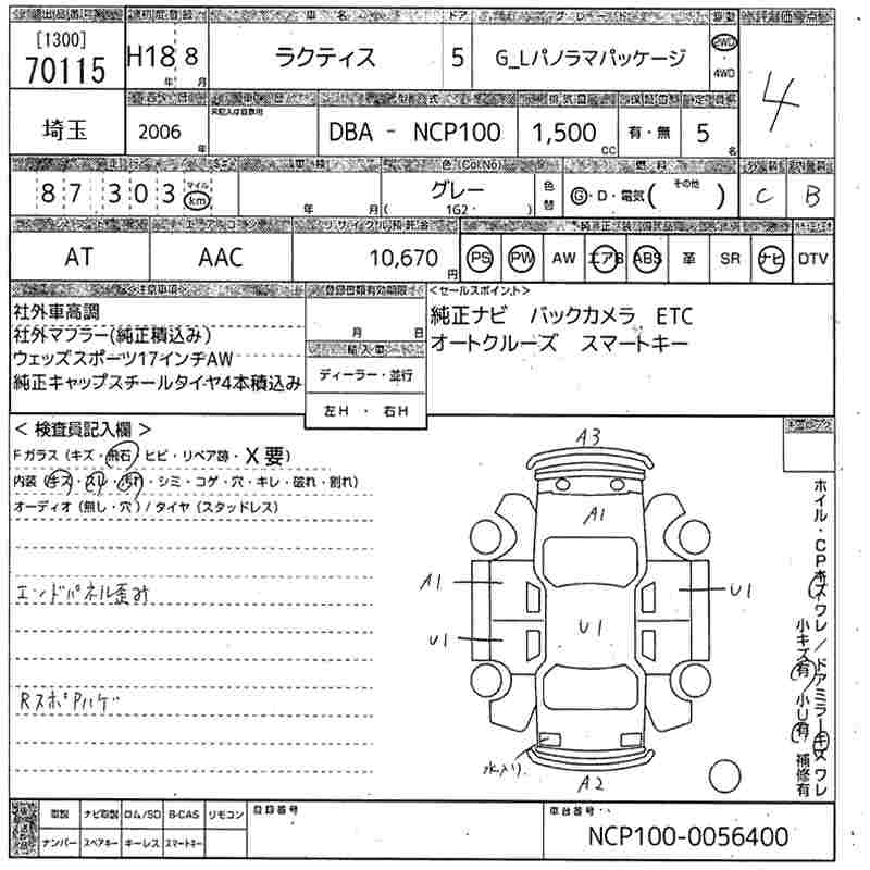 TOYOTA RACTIS G_L PANORAMA PACKAGE - лот 70115
