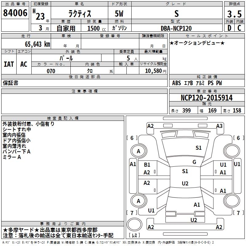 TOYOTA RACTIS S - лот 84006