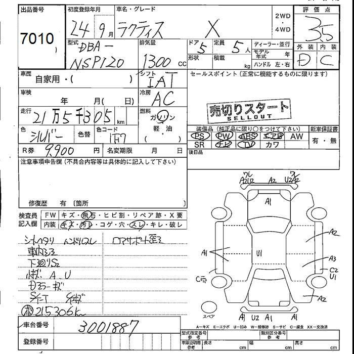 TOYOTA RACTIS X - лот 7010