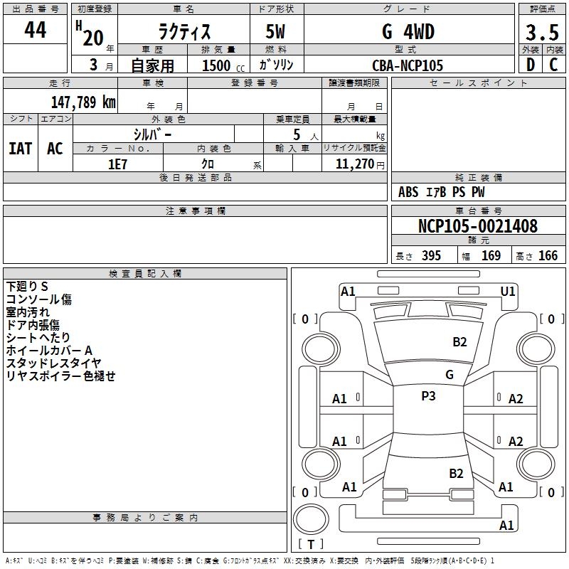 TOYOTA RACTIS G 4WD - лот 44