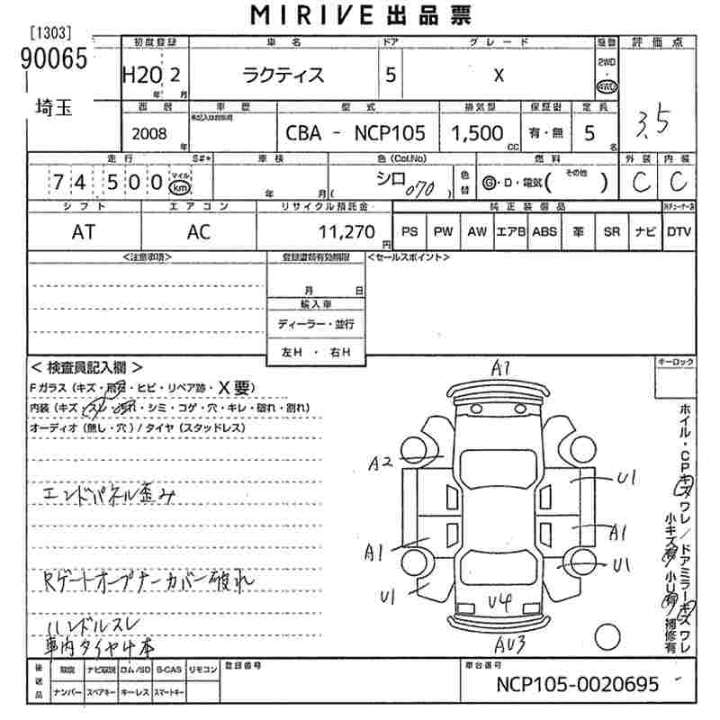 TOYOTA RACTIS X - лот 90065
