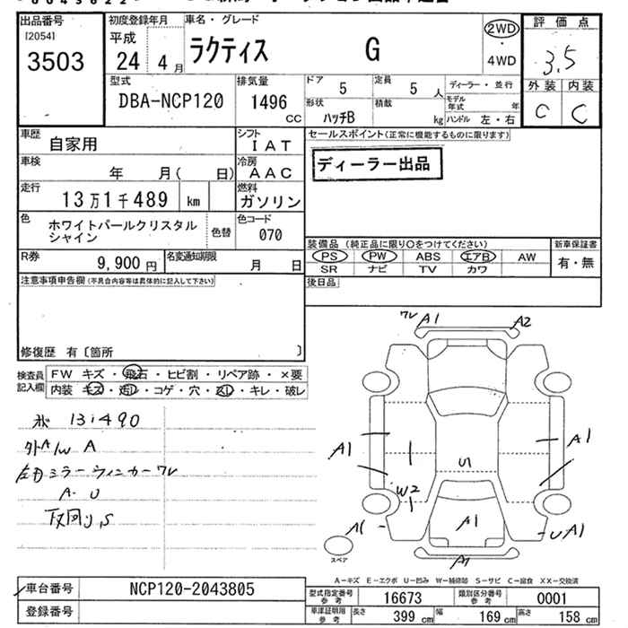TOYOTA RACTIS G - лот 3503