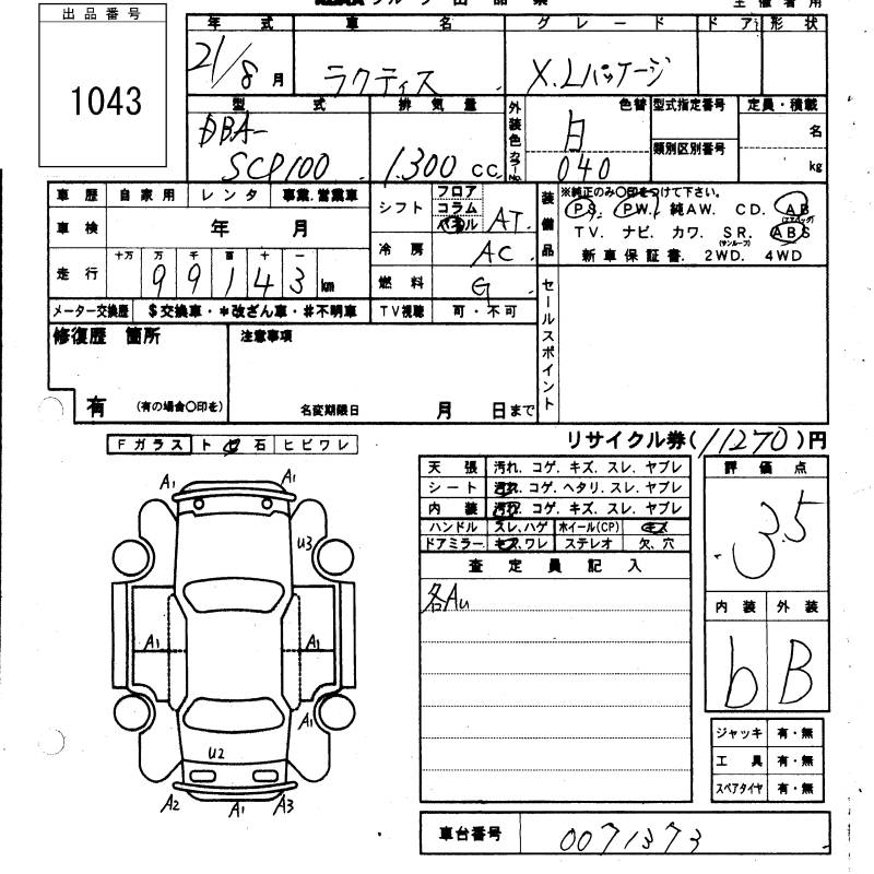 TOYOTA RACTIS - лот 1043