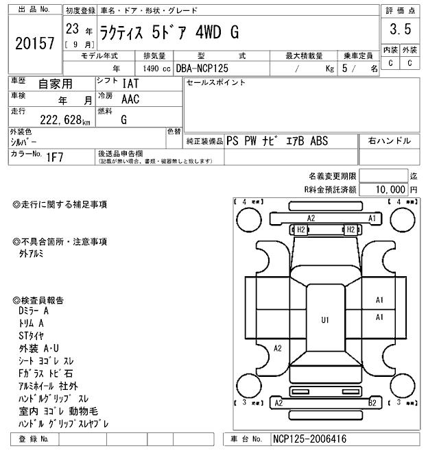 TOYOTA RACTIS - лот 20157