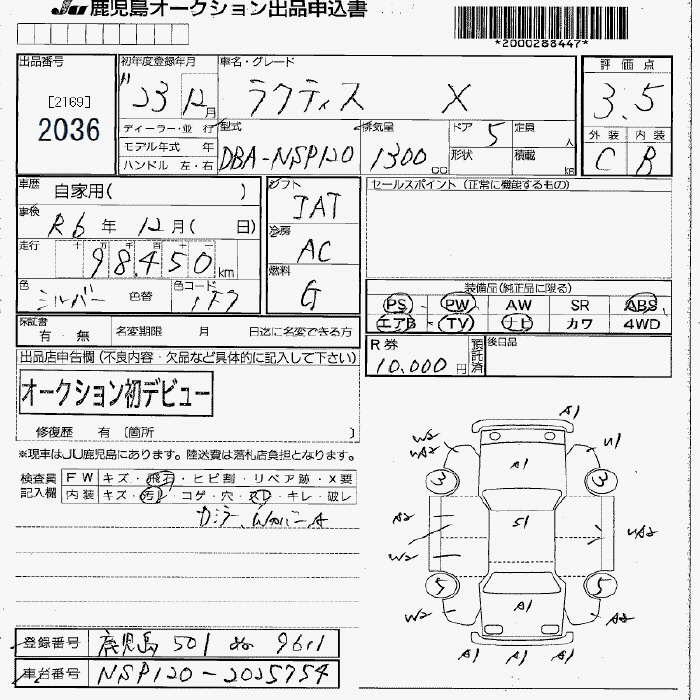TOYOTA RACTIS - лот 2036