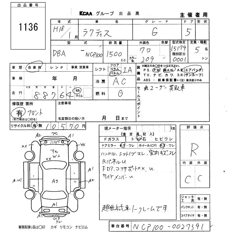 Все аукционы TOYOTA RACTIS