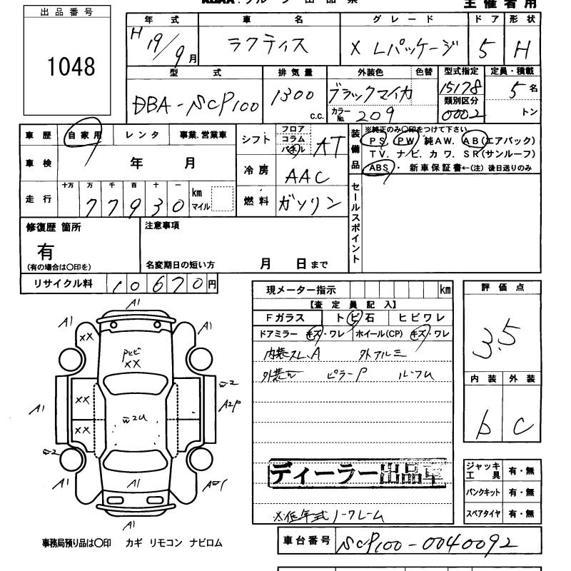 TOYOTA RACTIS - лот 1048