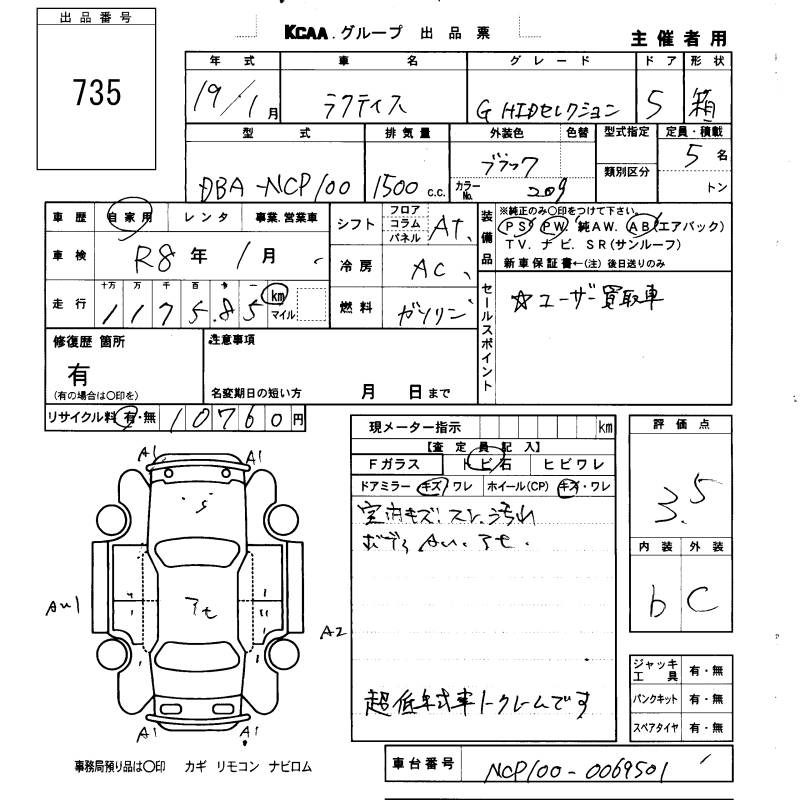 TOYOTA RACTIS - лот 735