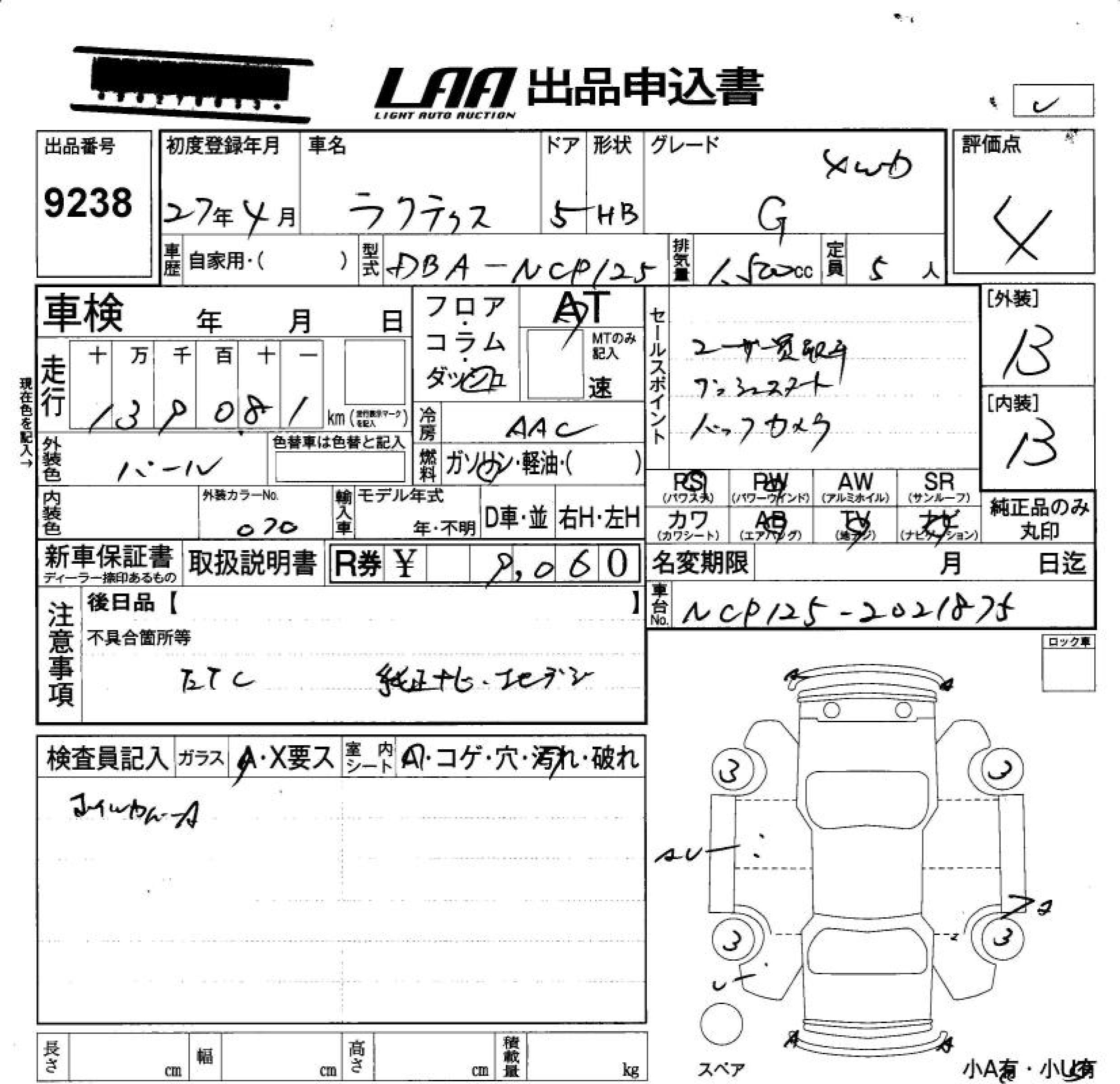 TOYOTA RACTIS - лот 9238