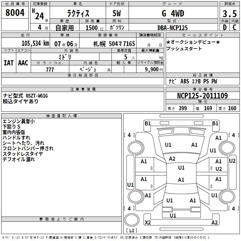 TOYOTA RACTIS - лот 8004