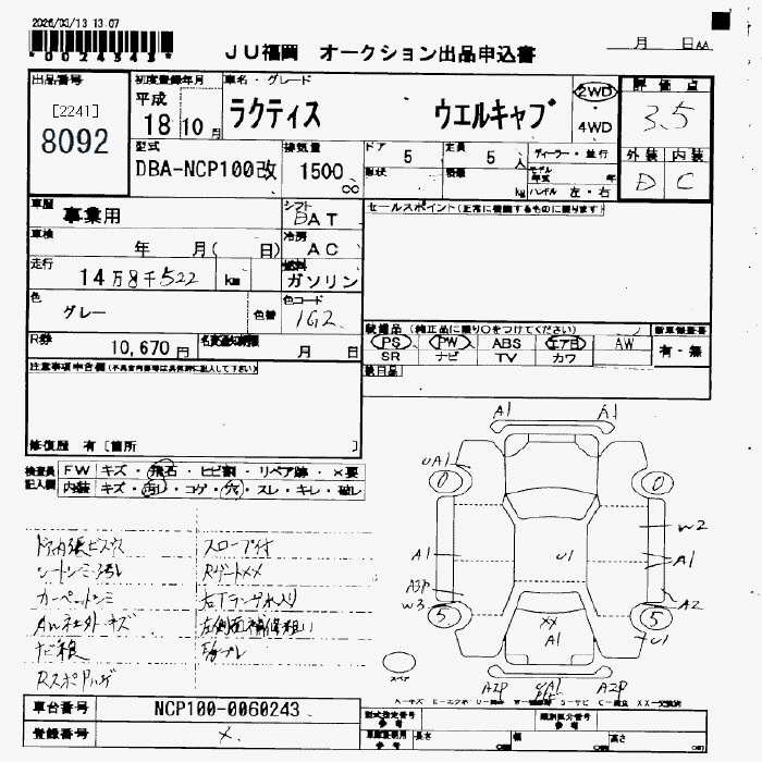 TOYOTA RACTIS - лот 8092