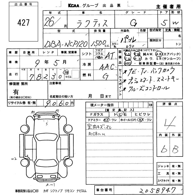 TOYOTA RACTIS - лот 427