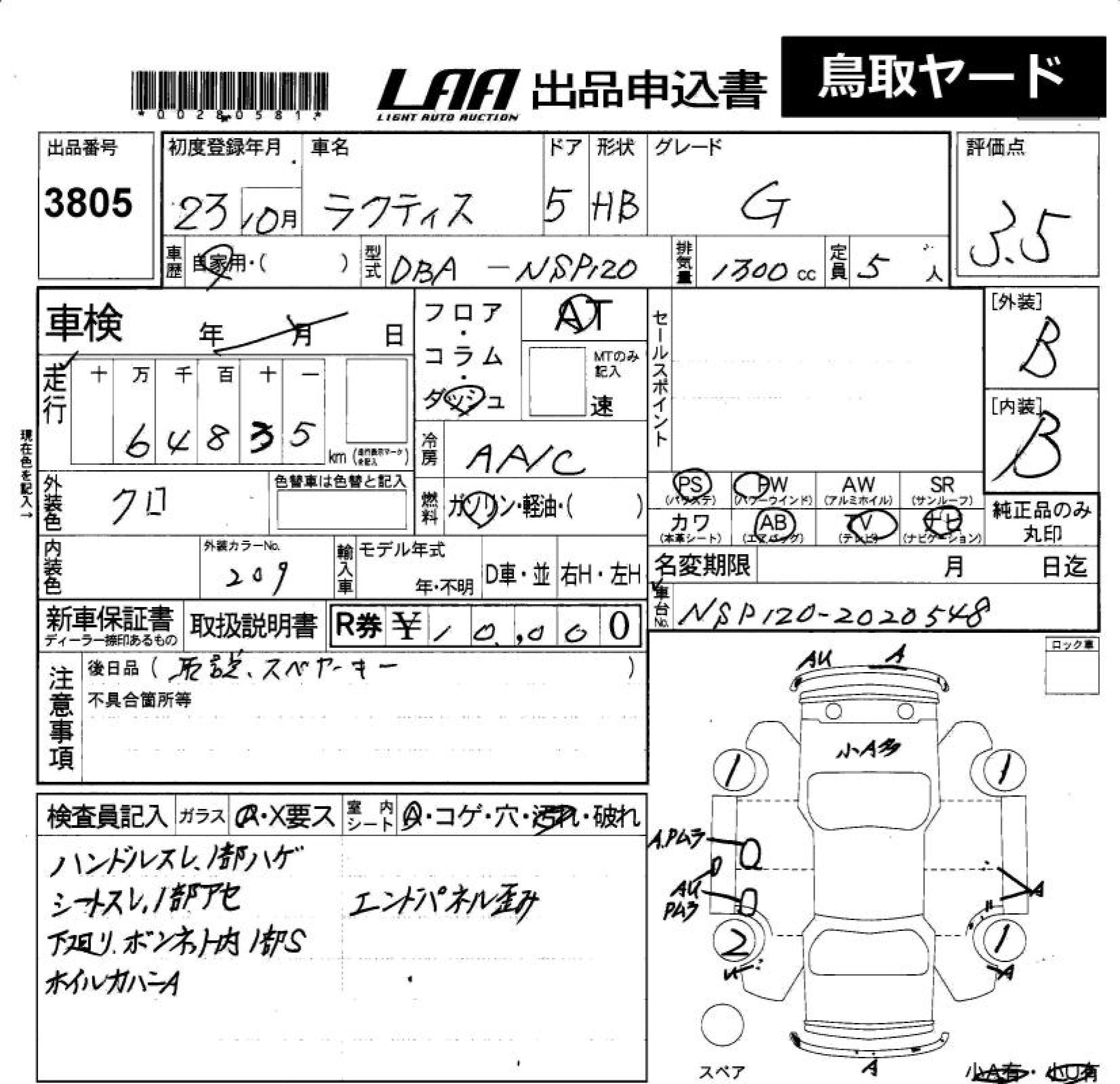 TOYOTA RACTIS - лот 3805