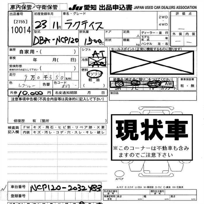 TOYOTA RACTIS - лот 10014