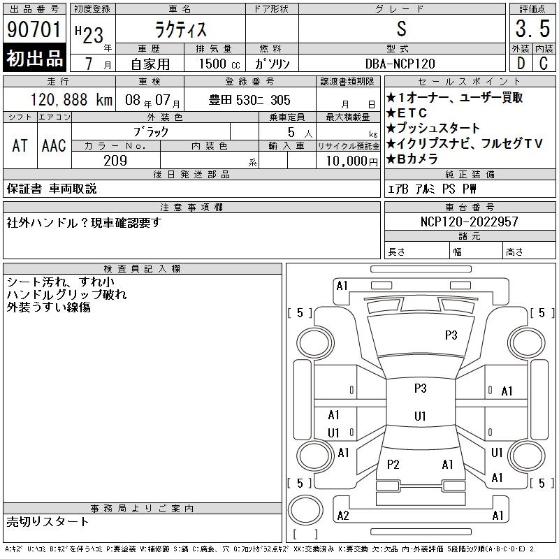 TOYOTA RACTIS S - лот 90701