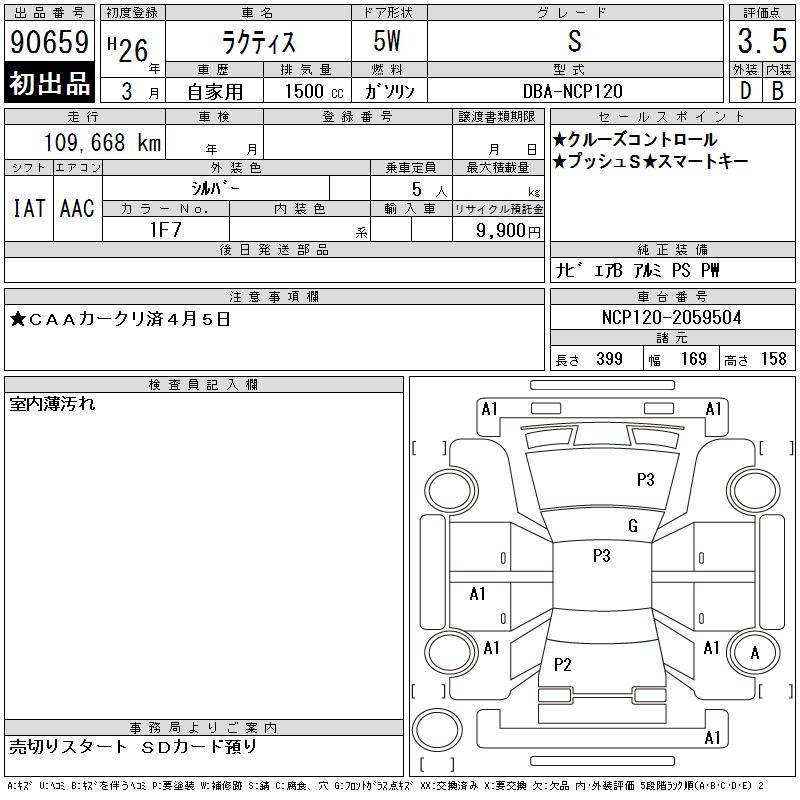 TOYOTA RACTIS S - лот 90659