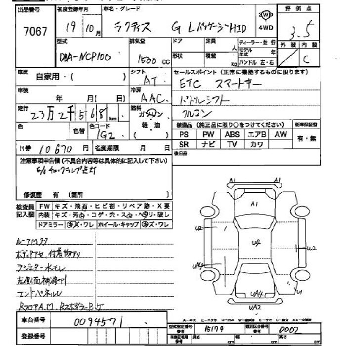 TOYOTA RACTIS G L-PG HID - лот 7067
