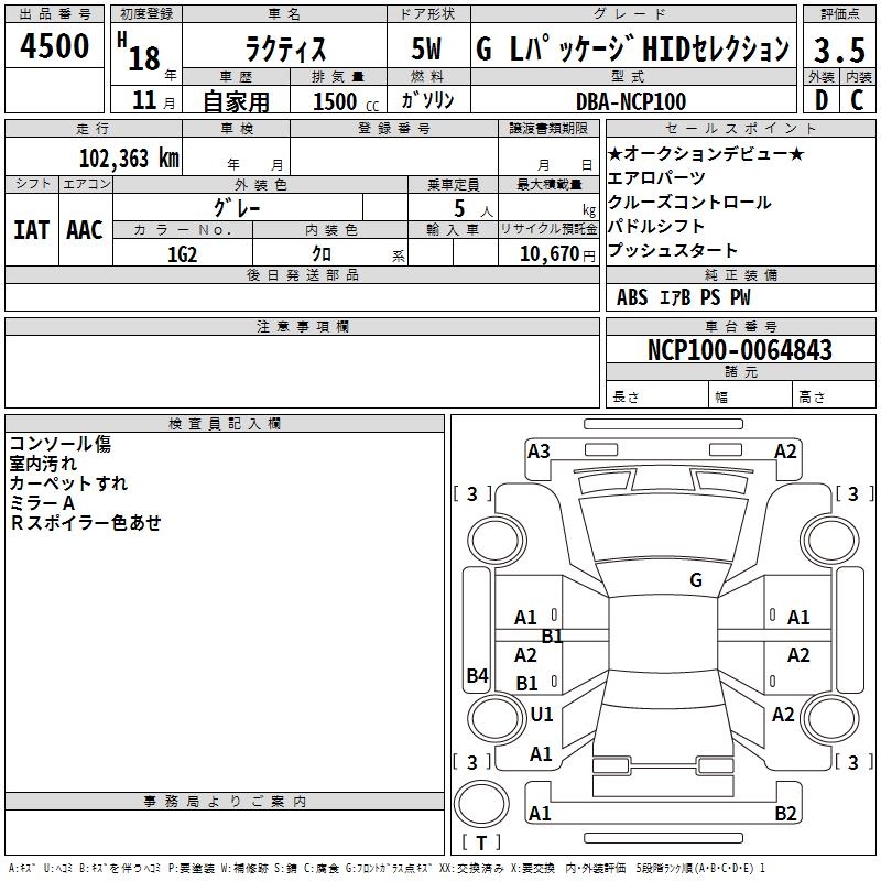 TOYOTA RACTIS G L PACKAGE HID SELECTION - лот 4500